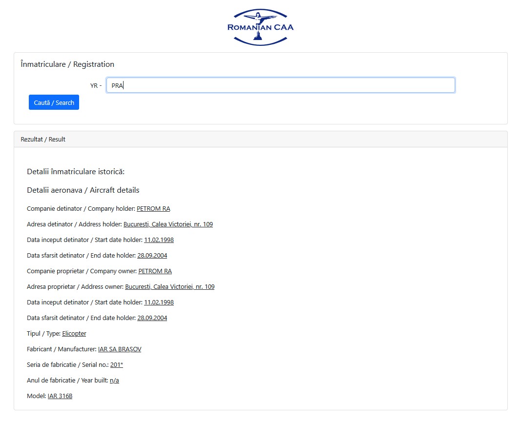 Aircraft History Record