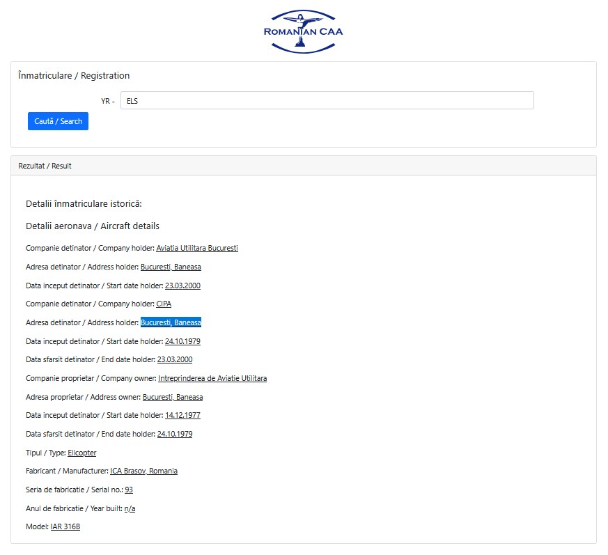 Aircraft History Record